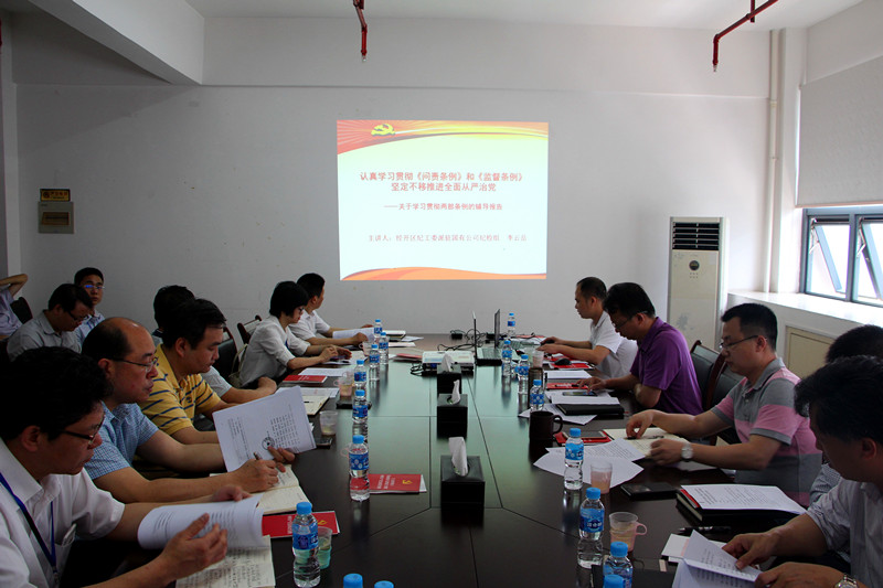 為進(jìn)一步加強(qiáng)廉政文化建設(shè),不斷提高黨員干部廉潔從業(yè)意識(shí),推進(jìn)廉潔從業(yè)教育工作,以黨風(fēng)廉潔建設(shè)新成效促進(jìn)綠港集團(tuán)健康發(fā)展,4月20日上午,綠港集團(tuán)黨委召開學(xué)習(xí)貫徹《中國(guó)共產(chǎn)黨問責(zé)條例》和《中國(guó)共產(chǎn)黨黨內(nèi)監(jiān)督條例》(以下簡(jiǎn)稱“兩部條例”)宣講報(bào)告會(huì)暨中心組學(xué)習(xí)擴(kuò)大會(huì)議,會(huì)議由綠港集團(tuán)黨組書記、董事長(zhǎng)楊東主持,經(jīng)開區(qū)紀(jì)工委派駐國(guó)有公司紀(jì)檢組組長(zhǎng)李云岳就“兩部條例”進(jìn)行了宣講,綠港集團(tuán)全體班子成員、集團(tuán)本部中層以上管理人員、子公司領(lǐng)導(dǎo)班子約50人參加會(huì)議。