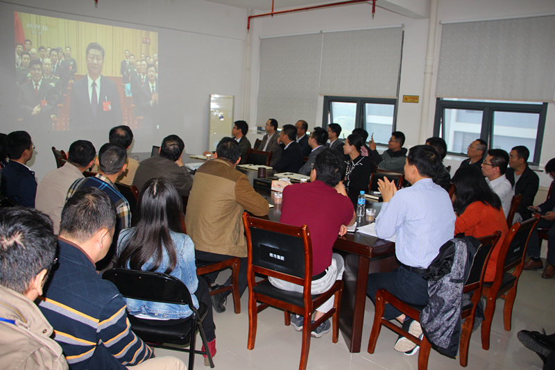 金秋十月,南國綠城花正艷。1018日,黨的十九大在北京勝利開幕。當日上午9時,綠港集團黨委組織集團公司領(lǐng)導(dǎo)班子全體成員、董事長助理、總經(jīng)理助理,各部門、各子公司負責人及公司全體黨員,在麗匯大廈415會議室集中收看中國共產(chǎn)黨第十九次全國代表大會開幕會直播盛況。全體與會人員懷著無比激動的心情,聚精會神,靜靜聆聽,認真記錄,不時爆發(fā)出熱烈的掌聲!在長達三個半小時的收看過程中,整個會場始終保持莊嚴、肅穆、緊張、熱烈的良好氛圍。