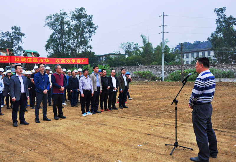 現(xiàn)場會上,綠港集團集董事長、總經(jīng)理龔國強對蒞臨指導的各位領導表示熱烈歡迎。他表示,由綠港集團投資建設的南寧經(jīng)濟技術開發(fā)區(qū)吳圩鎮(zhèn)玉米研究所耕地提質(zhì)改造(旱改水)項目,歷經(jīng)9個月的前期準備工作后得以勝利開工建設,與經(jīng)開區(qū)管委會、市國土資源局的正確領導和精心指導以及廣西農(nóng)科院、吳圩鎮(zhèn)人民政府等單位的大力支持是分不開的。他指出,南寧經(jīng)濟技術開發(fā)區(qū)吳圩鎮(zhèn)玉米研究所耕地提質(zhì)改造(旱改水)項目是在貫徹落實中央“占優(yōu)補優(yōu)、占水田補水田”精神,確保新增建設用地項目的占補平衡的大背景下實施的,旨在大力推進耕地質(zhì)量等級提升,為推進南寧空港經(jīng)濟區(qū)基礎設施建設,確保經(jīng)開區(qū)耕地質(zhì)量等級提升及儲備更多的建設用地指標。各參建單位要嚴格控制工程質(zhì)量,確保各項指標達到設計要求,同時要加強管理,科學組織,保質(zhì)保量保安全,按期完成工程建設任務。此次玉米研究所耕地提質(zhì)改造(旱改水)項目的開工建設僅僅是綠港集團“旱改水”項目建設邁出的第一步,今后,綠港集團將繼續(xù)建設開發(fā)更多的“旱改水”項目,為經(jīng)開區(qū)及吳圩空港區(qū)經(jīng)濟發(fā)展、鄉(xiāng)村振興做出更大貢獻。
