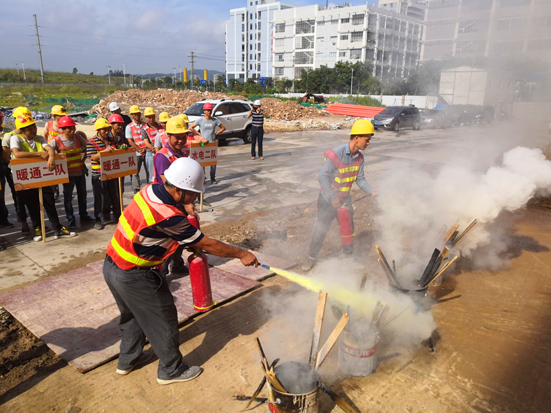 激烈的比賽結(jié)束后,消防應(yīng)急演練活動開始了。當聽到“起火啦”的大喊聲,全體人員井然有序的進行了逃生演習(xí)。伴隨著濃濃的煙霧,每個人捂著“濕毛巾”,沿著樓梯靠右一個接一個的快速撤離。當全體人員走出廠房大門時,工作人員在空地上點燃了幾盆火焰。公司質(zhì)安部負責(zé)人講解了干粉滅火器的使用方法后,大家進行了踴躍的嘗試。在此次消防演習(xí)中,本著防患于未然的心態(tài),所有人員積極參與,專心聽講,既鞏固了消防安全知識,也提高了項目安全生產(chǎn)工作水平。