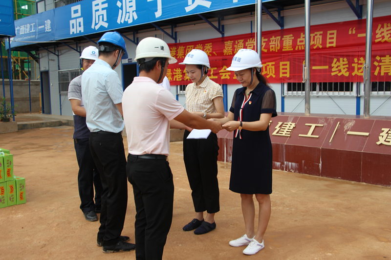 7月4日一早,集團慰問工作小組在集團公司副總經(jīng)理陸羿冰、黃克和集團副總經(jīng)理、工會主席黃麗琴的率領下,來到了吳圩鎮(zhèn)“綠港·云海灣”項目工地。綠港?云海灣項目由嘉通公司重點打造的開發(fā)建設高端住宅社區(qū),項目位于吳圩空港經(jīng)濟區(qū)的核心位置,項目總投資額3.8億元,于今年3月正式啟動。目前,項目商業(yè)區(qū)已開展基礎施工,別墅區(qū)一期施工6棟已結構封頂,小高層區(qū)正在進行土方開挖工作。